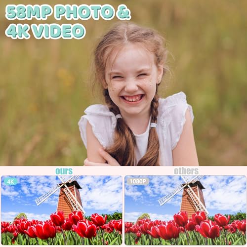 【Digital Camera for photography beginner】This compact digital camera weighs 0.5lb, measures 3.9*2.1*0.8 inch, equipped with 2.88 inch IPS color display screen, easily fit into a bag or pocket. Adopts advanced CMOS sensor, supports 4K FHD videos and 58MP photos with simply operation. Record wonderful times with families, kids, friends and classmates on travel, holiday, outdoors.