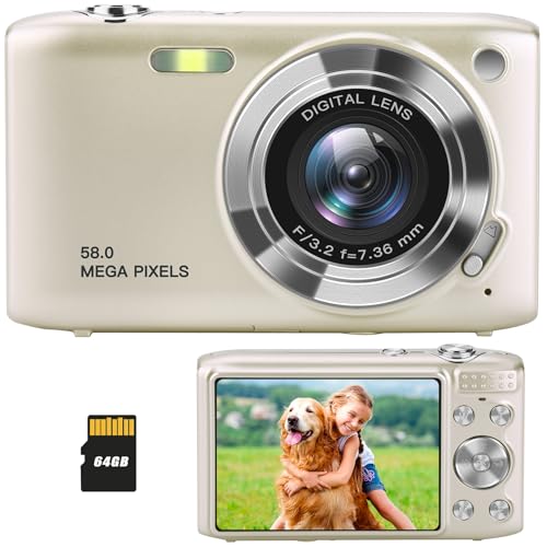 【Product list】 1x Digital camera, 1x 64GB memory card, 1x USB charging cable, 1x User manual, 1x Lanyard, 1x Cleaning cloth, 1x Pouch.【ONE-Year Product Support】Any issue please feel free to contact us via amazon message, we will reply within 24 hours. your satisfaction is our first priority.