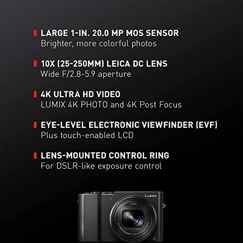 Panasonic LUMIX ZS100 4K Point and Shoot Camera, 10X LEICA DC VARIO-ELMARIT F2.8-5.9 Lens with Hybrid O.I.S., 20.1 Megapixels, 1 Inch High Sensitivity Sensor, 3 Inch LCD, DMC-ZS100S (USA SILVER)