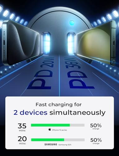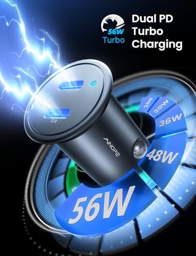 DUAL PD 3.0 HIGH SPEED: AINOPE 56W Car Charger USB C is equipped with dual PD3.0 fast-charge ports so that the maximum output is up to 56W in total. It supporting PD 20W(C1) and PD 36W (C2) high output, from iPhone to Samsung to USB-C tablets and more, it can fast charging to virtually any mobile device at the same time. Support PD3.0/QC3.0/QC2.0/PPS/AFC/FCP protocol. They make a 5X faster-charging speed, saving an average of two hours.