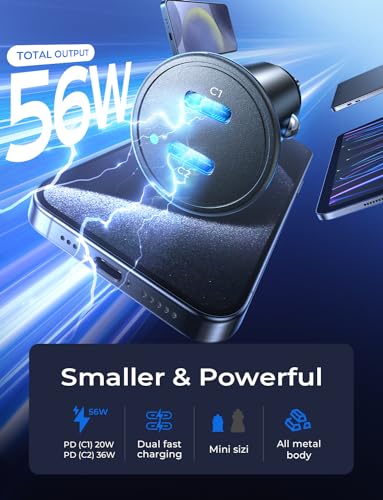 AINOPE USB C Car Charger for iPhone 15, Smallest 56W Fast Charginig PD 3.0 Dual Car Charger USB Compatible with iPhone 15 Pro Max Plus/14/13 Pro/12 Pro/12 Mini, Galaxy, iPad Pro