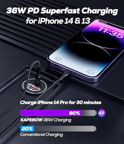 ▶【30W Super Fast Charging Speed】- Our USB C fast car charger provides PD 30W (Max) and QC 30W (Max) output, which can quickly charge an iPhone 14 from 0% to 80% within 30mins. That’s up to 400% faster than your old charger.