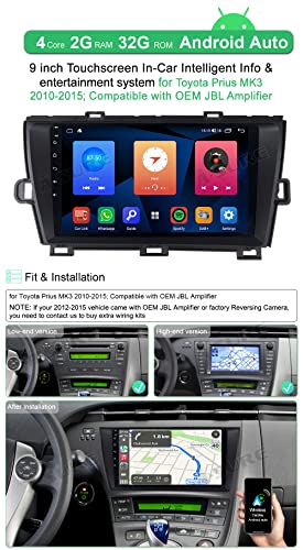 ASURE 9 inch Car Stereo Radio GPS Navigation Unit for Toyota Prius 2010-2015 HD Touchscreen Multimedia Player,4 Core 2G+32G Android System with Wireless Carplay,Android Auto,SWC,DSP,1280×720,Bluetooth