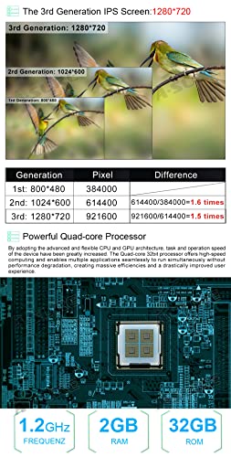 【Car In-Dash Stereo Radio Upgrade】Customization Android system,with 4-Core 1.2Ghz CPU,2GB RAM,ensures smooth operation and faster response,32GB ROM for more apps installed,1280*720 HD Touchscreen thrid-gen IPS display,color richer and display clearer,Screen Display Resolution 1280×720, Video output resolution 1024×600 (to external monitor)