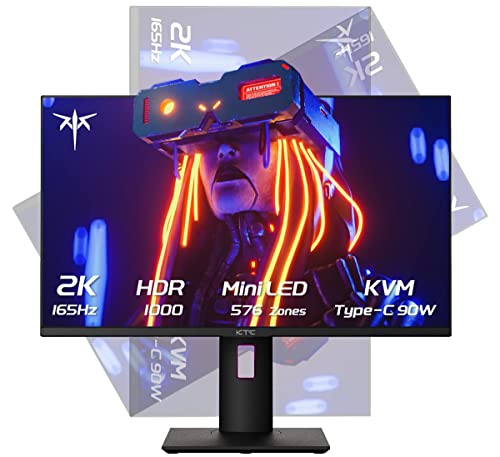27 Inch Mini LED Monitor, 1440P 165Hz/144Hz Gaming Monitor, HDR1000, Built-in Speakers, HDMI2.0, DP1.4, Type-C 90W, USB, KVM, Swivel/Height/Pivot/Tilt Adjustable, Mountable, 2K PC Monitor