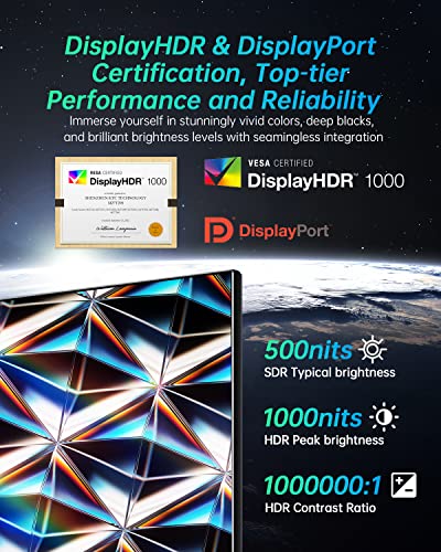27-Inch Gaming Monitor 4K UHD 160Hz/144Hz 1ms Fast IPS Mini LED, HDR1000, 576 Zones,Eyecare, Advanced Ergonomics, HDMI2.1 & DP1.4 Speakers