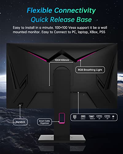 [COMFORT COMES FIRST] Ergonomically quick-release stand to offer extensive tilt, swivels height and pivots allowing you to view at your most optimal position. VESA wall monitor mount pattern gives you plenty of options for mounting your monitor on whatever wall or desk suits your fancy.
