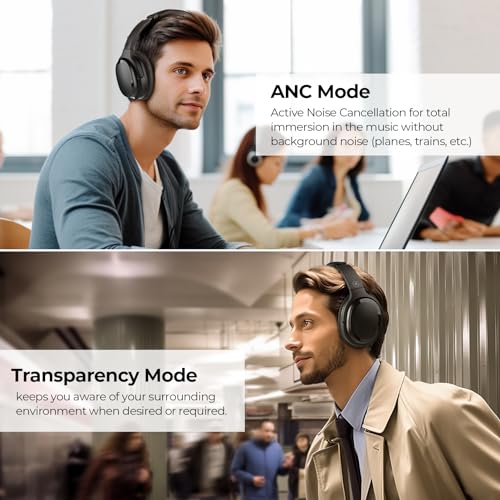 Hybrid Active Noise Canceling Headphones Bluetooth Headphones Over Ear Headphones Wireless Headphones Noise Cancelling with Travel Case, Protein Earpads, HiFi Audio, 30H Playtime, Black