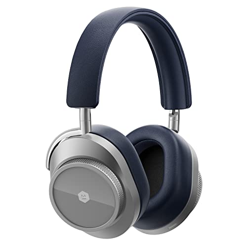 MASTER & DYNAMIC MW75 Active Noise-Cancelling (ANC) Wireless Headphones, Bluetooth Over-Ear Headphones with Mic, Silver Metal/Navy Leather