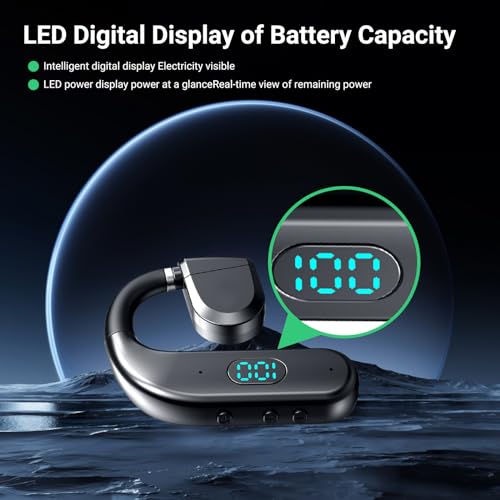 2024 New Open Ear Headphones, Sport Waterproof Wireless Bluetooth Headphones Noise Canceling, 48 Hrs Phone Headset with HiFi Stereo, LED Display, Voice Control, for Driving/Business/Office/Trucker
