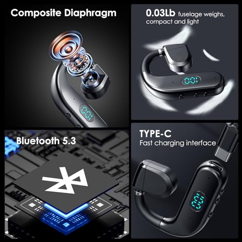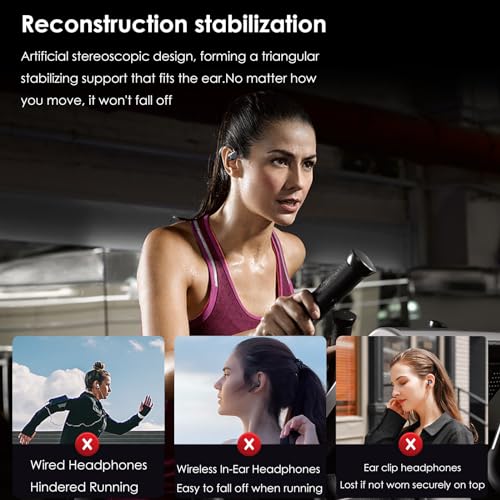 【Open-ear Design Headphones】The bluetooth earphones feature an open-ear design, which is ergonomically designed to allow the ear buds to fit firmly into your ears while maintaining smooth airflow around your ears. Open-back headphones wireless bluetooth offer enhanced comfort compared to in-ear headphones, allowing you to relax and fully enjoy your music. The single earbud have black technology 180° rotation design, there is no restriction on wearing the left and right ears.