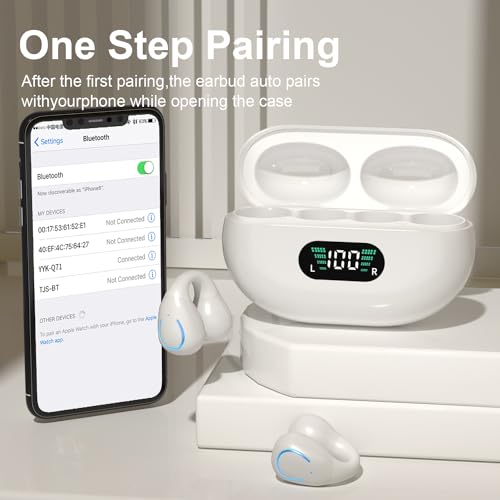 Open Ear Headphones Clip On Mini Earbuds Bluetooth 5.3 Wireless Earbuds 48 Hours Playtime IPX7 Waterproof Sports Bone Conduction Headphones Bluetooth for Workout Driving Walking with iPhone Android