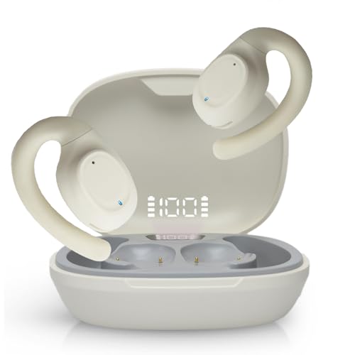 True Open Ear Wireless Headphones, Bluetooth 5.3 Earbuds with Ear Hooks – Stereo Sound, 40Hrs Battery Life, LED Display – Comfort, Clear Calls for Driving, White
