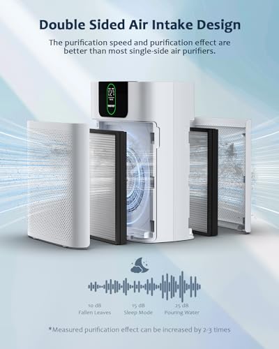 DOUBLE SIDED AIR INTAKE: Compared with most single-sided air inlets, WESTHEY air purifier adopts double-sided simultaneous air inlet, which can quickly purify polluted air, improve the purification speed and purification effect. Compact air cleaner fits rooms up to 1820 ft² with CADR of up to 1168 CFM for a variety of rooms.