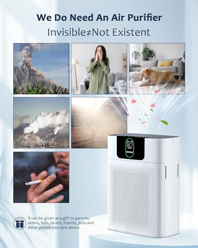 H13 HEPA AIR FILTER: Air purifier for home large room Adopting four layers of filtration and adding activated carbon particles, it can effectively purify pet hair dander, odors, tiny particles of dust, pollen, smoke, wildfire smoke,VOCs and other pollutants.