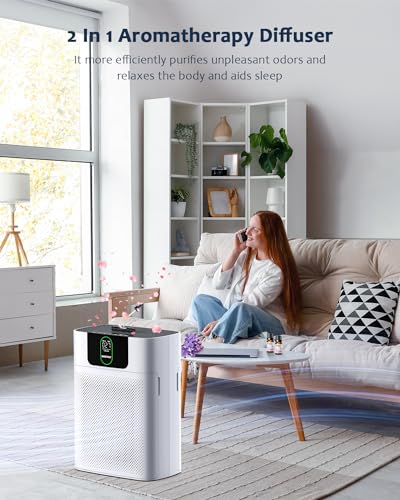 Air Purifiers for Home Large Room Up to 1820 ft² Double Sided Air Inlet H13 HEPA Air Purifiers Filter with PM2.5 Air Quality Monitoring Auto Fragrance Sponge, Air Cleaner for Pet Kids Elders