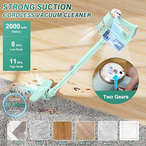 🌈【Up to 11KPa Suction 】The high-quality 160W motor with 90,000 RPM provides a powerful vacuum suction:low-grade 8Kpa and high-grade 1