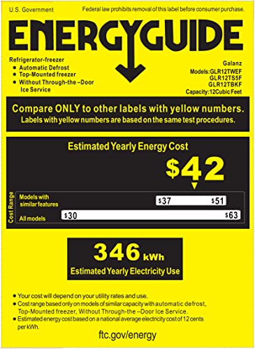 Galanz GLR12TS5F Refrigerator, Dual Door Fridge, Adjustable Electrical Thermostat Control with Top Mount Freezer Compartment, 12.0 Cu.Ft, Stainless Steel, 12