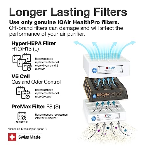 IQAir HealthPro Plus Air Purifier – Medical Grade HyperHEPA filter for home large room up to 1125 sq ft – for Viruses, Bacteria, Allergens, Asthma Triggers, Smoke, Mold, Pets, Dust, Odor, Swiss Made