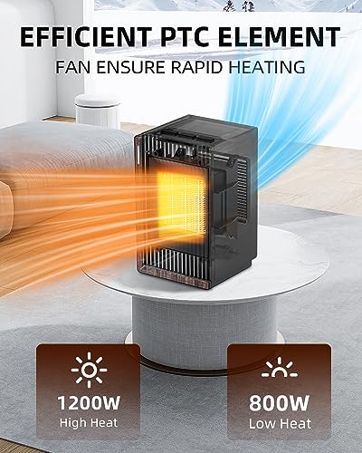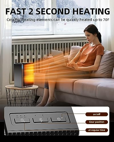 🔥【Heat Resistant Material & Ceramic Heating】This electric space heater is made of flame retardant PP material, which is a high temperature resistant flame retardant material. It will not overheat even if it is opened for a long time. Advanced PTC ceramic heating elements provide faster, more efficient heating than conventional heaters. Small space heaters heat up quickly in 1 seconds.