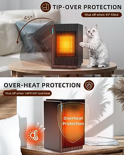 🔥【Multiple Safety Guarantees】This space heater has a built-in automatic overheating protection system that will shut down the device when the heater components are overheated, and also has a tipping protection function, so you can use this heater with confidence.