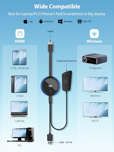 ✅【Plug and Play】No apps, no Wi-Fi, no Bluetooth required. Simply plug this wireless HDMI dongle into your display’s HDMI port and connect your i-Phone to the adapter’s Wi-Fi signal, then start mirroring or extending your screen. No need messy HDMI cables Now! Suitable for business, education, home entertainment or gaming.