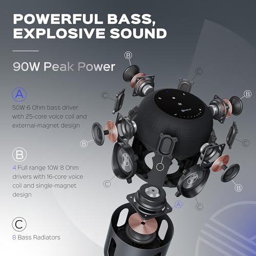 TREBLAB HD-360 Portable Bluetooth Speaker – Powerful 5-Driver System w/Subwoofer and 8 Bass Radiators, Loud 360° Surround Sound, 90W Stereo, 20H Playtime, IPX4 Waterproof Wireless Speakers