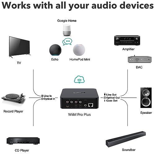 WiiM Pro Plus AirPlay 2 Receiver, Chromecast Audio, Multiroom Streamer with Premium AKM DAC, Voice Remote, Works with Alexa/Siri/Google, Stream Hi-Res Audio from Spotify, Amazon Music, Tidal and More