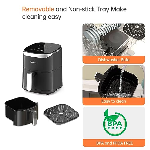 Air Fryers 4 Qt, Fabuletta 9 Cooking Functions Smart Air Fryers, Shake Reminder, Powerful 1550W Electric Hot Air Fryer,Tempered Glass Display, Dishwasher-Safe & Nonstick, Quiet