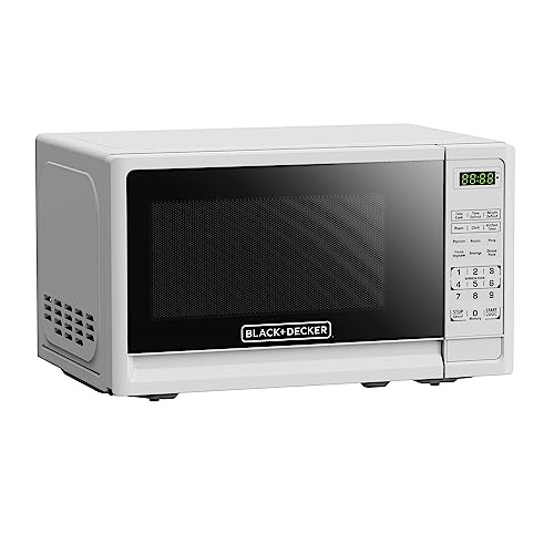 BLACK+DECKER Compact Countertop Microwave Oven 0.7 Cu. Ft. 700-Watts with LED Lighting, Child Lock, White