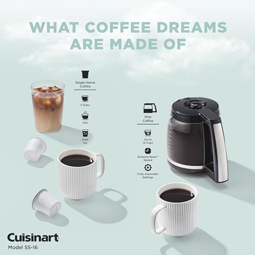 Cuisinart Coffee Maker, 12-Cup Glass Carafe, Automatic Hot & Iced Coffee Maker, Single Server Brewer, Stainless Steel, SS-16