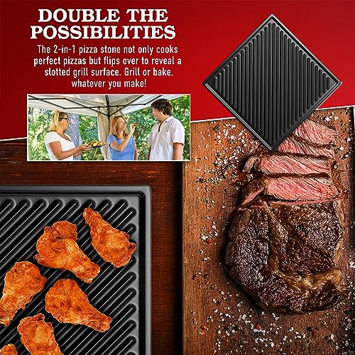 2-IN-1 PIZZA OVEN AND BBQ GRILL – Using a 12″ dual pizza stone and slotted grill, reach internal temperatures of up to 750F degrees, this oven effortlessly switches between baking pizza and grilling. For optimal results, we recommend preheating the oven for just 15 minutes. Once the preheating is complete, this kitchen marvel will be primed and ready to transform your favorite ingredients into mouthwatering pizzas and succulent meats in a matter of minutes.