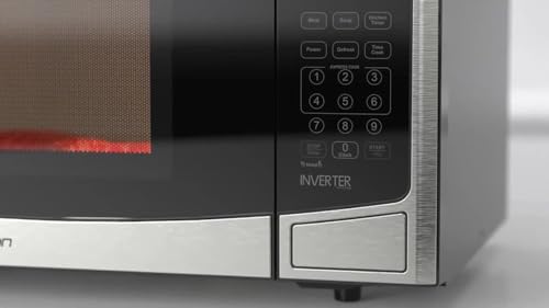 Emerson MWI1212SS-N Microwave Oven with Inverter, Timer & LED Display 1000W, 10 Power Levels, 8 Pre-Programmed Settings, Removable Glass Turntable with Child Safe Lock, 1.2 Cu. Ft, Stainless Steel