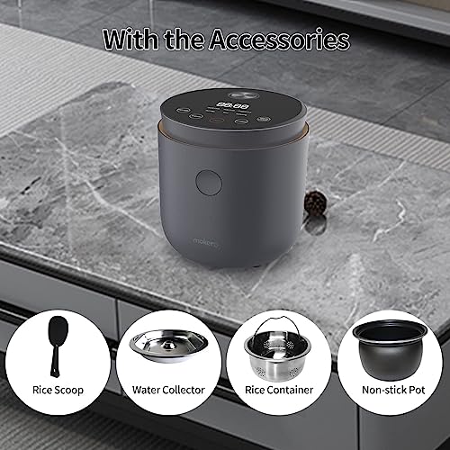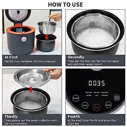 【Mini Rice Cooker for Low Sugar Rice】: Low Sugar Rice Cooker is 2 cups raw. Maximum capacity 2L; a small amount of starch draining helps reduce the high sugar intake in rice. It can effectively reduce the intake of carbohydrates. Use with a thick black spherical pan for even heat and better cooking results.