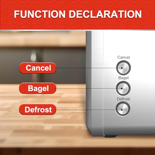 🥯【3 TOASTER FUNCTIONS】: ①BAGEL: This setting is used for toasting bagels or hamburger buns, and it requires 15% more time to ensure even toasting. ②DEFROST: Each setting on this function takes 8%-12% longer than the corresponding normal setting. It is used for defrosting frozen items. ③CANCEL: You can stop the toasting process at any time by pressing the CANCEL button.