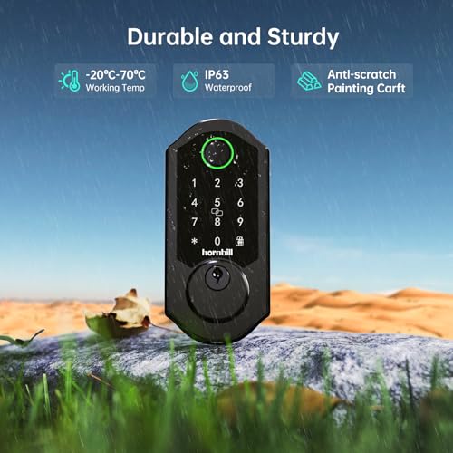 Higher Secutity: Hornbill ansi grade 1 heavy duty smart lock made of aluminium alloy material, IP65 waterproof rating and the stronger motor ensure your keypad operates normally in harsh environments. (-20℉~158℉). Long battery lifetime can operates 6-8 months, providing higher steady and security.