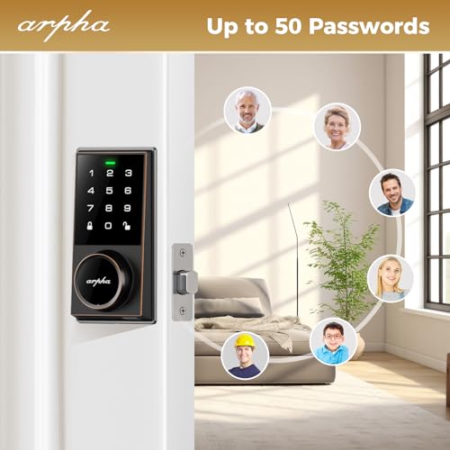 50 Code: Electronic door lock eliminates the need for users to carry keys. Smart deadbolt lock supports up to 50 different passcodes. Arpha AL301 provides spare keys for temporary use.