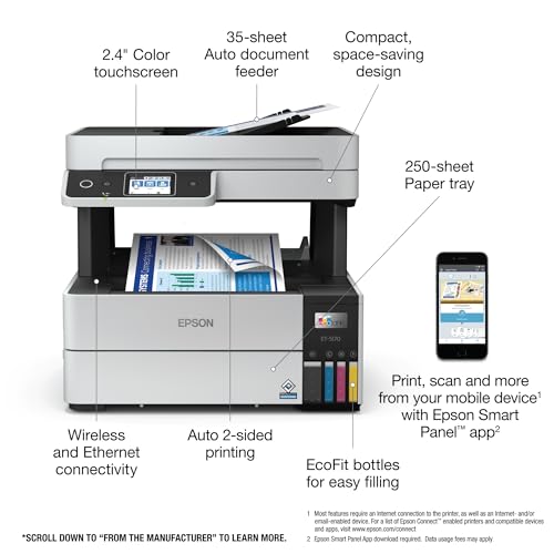 Epson EcoTank Pro ET-5170 Wireless Color All-in-One Supertank Printer with Scanner, Copier, Fax Plus Auto Document Feeder White Large