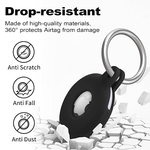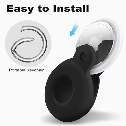 Airtag Holder Compatible with Air Tag, Airtags Tracker with Keychain, Protective Silicone Apple Air Tags Case Key Ring Item Finders GPS Accessories,Black