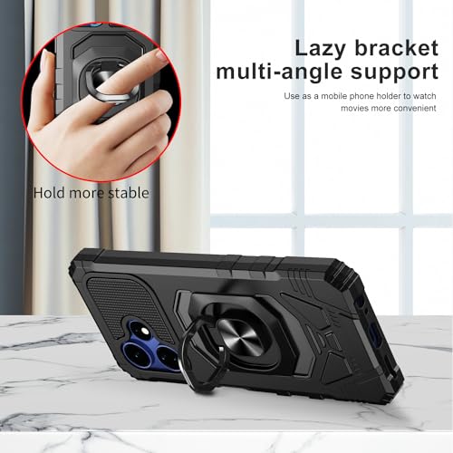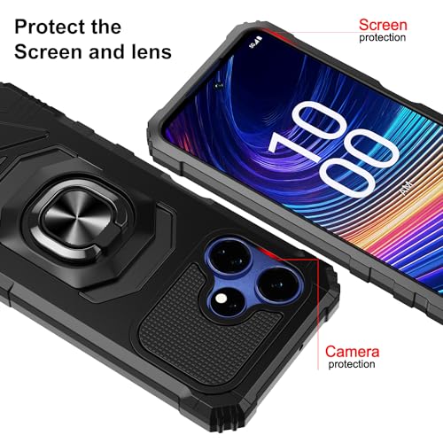 Cell Phone Protective Case For: Boost Mobile Celero 5G+ (2024); Multifunctional: Double layers hybrid protection, hard PC case can prevent your Boost Mobile Celero 5G+ (2024); from being scratched, soft TPU protect your Boost Mobile Celero 5G+ (2024); against shocks, damages. Perfect product design:Two – in – one case, consists of comfortable TPU and hard PC, the two are closely aligned, escort your phone. The raised lip on the edge protects the screen and camera. Rotatable Ring Holder: Metal ring kickstand can rotate 360°,easy to rotate and sturdy on the case. Built in kickstand gives you the convenience to watch videos and movies hands-free with desired comfort and stability, Besides, Built-in metal magnetic sheet for stable adsorption, which can be directly adsorbed to the magnetic car mount holder. Precise Cutout: All buttons and interface user-friendly design to avoid frequent disassembly. And the case perfect cutouts for speakers, camera and charging hole allow you to easy access to all features and convenient for charging your phone without take off the case.