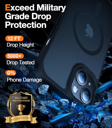 12FT MILITARY-GRADE FALL PROTECTION: Certified by ROHS. This iPhone 14/15 shockproof case has undergone more than 5,000 12FT drop tests with the phone in, and the phone is finally intact. Thanks to the upgraded 3rd gen X-SHOCK 360° lens airbag with a tough PC matte back and soft flexible rubber bumper, it provides a strong buffer to prevent drops. The tiny design of 2.5 mm lips over the camera and 1.5 mm bezels over the screen prevent the screen and camera from dust and scratches.