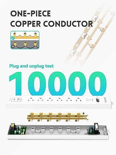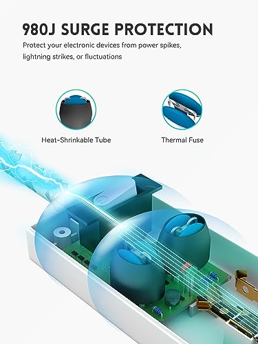💡【980J Surge Protection】 This (980 Joules) surge protector power strip with 3-line surge protection (line–neutral, line–ground and neutral–ground) to protect your electronic devices from overload, short circuits, power spikes, lightning strikes, or fluctuations.