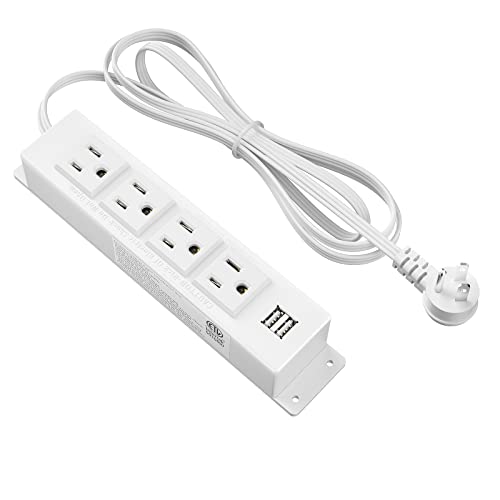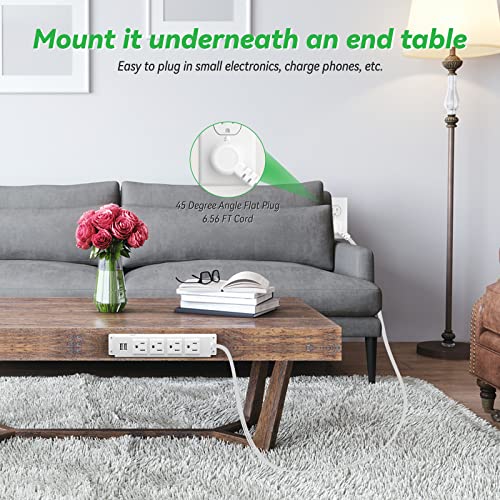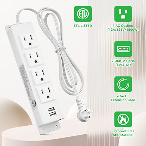 Wall Mount Power Strip, Power Strip with 2 USB Port and 4 AC Outlet, 6.56 FT Extension Cord Flat Plug Power Strip, Mountable Power Strip Outlet