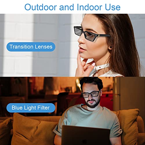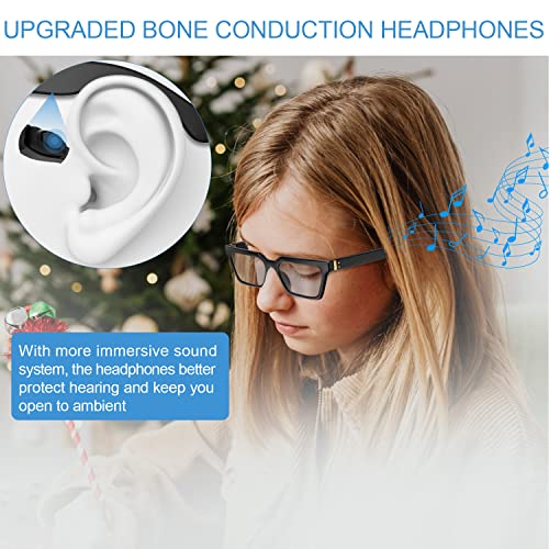 Upgraded Bone Conduction Headphones – Anti Blue Light & Photochromic Lenses – Voice Assistant – True Wireless Bluetooth Smart Glasses for Men/Women – Immersive Sound