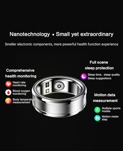Smart Ring Health Fitness Tracker for Man Pedometer Sport Sleep Monitor, IP68 Bluetooth Ring Tracker Silver US11
