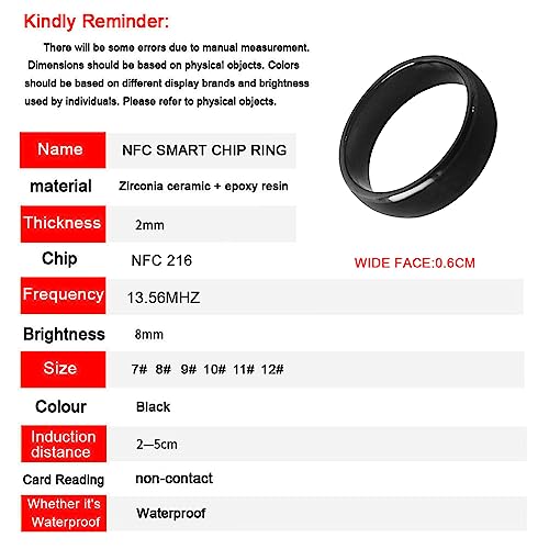 Waterproof Ceramic NFC Ring, NFC 216 888 Bytes Chip Universal for Mobile Phone, All-Round Sensing Technology Wearable Smart Ring, Fasion Ring(NFC 216 ring-21mm)